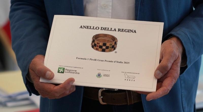 Dopo il grande successo della prima edizione torna, in occasione del Gran Premio di Monza di Formula 1, l’‘Anello della Regina’. Un prezioso riconoscimento che verrà consegnato al pilota che conquisterà la pole position dopo le prove ufficiali.