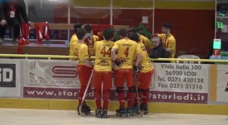 Questa sera, nella prima giornata del girone di ritorno del campionato di hockey su pista, la compagine lodigiana non ha dovuto attendere più di tanto per battere Saitta, portiere dei toscani.